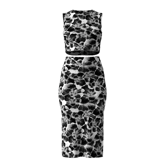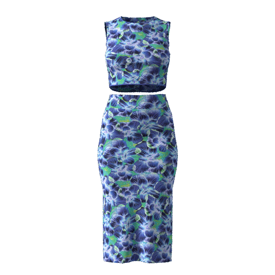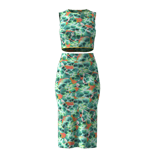 To bring my design to life, I created 3D renderings of Bok Choy Dream on a mesh skirt set using Browzwear VStitcher.